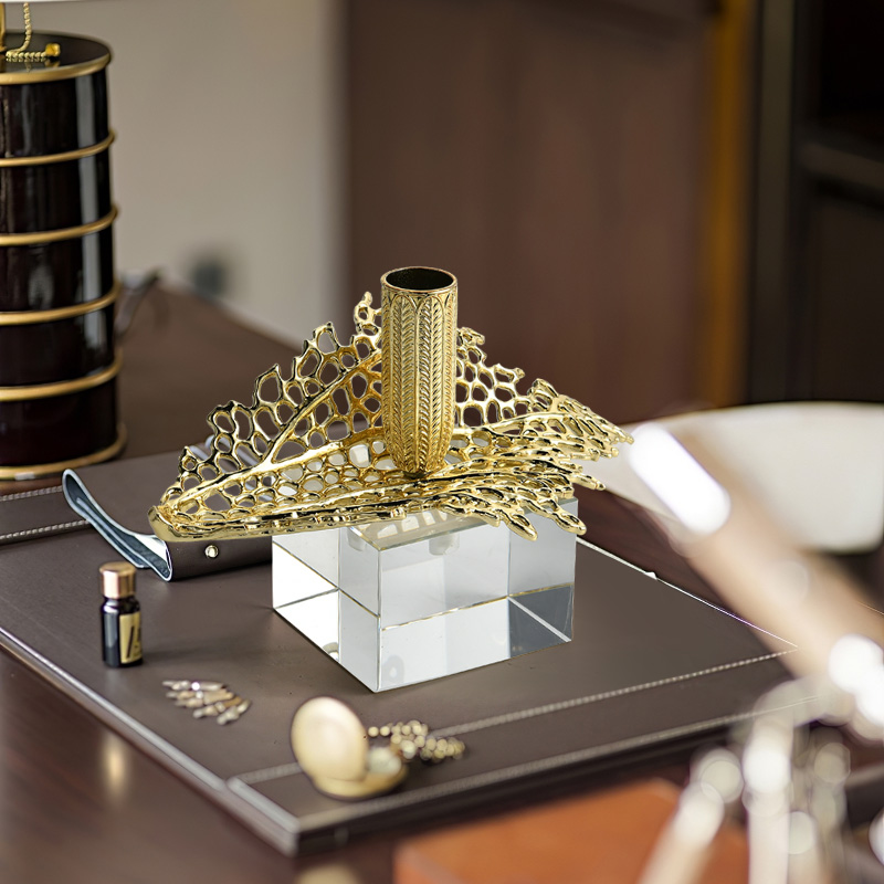 Gold has been loved from time immemorial, not only for the natural sense of its light and warmth from the sun, but also because it has been endowed with sanctity, wealth, life, and rank in religion. Inspired by the forces of nature, the Rundecor high-quality Vintage Metal Base Glass Vase Decor inherits classical cultural beliefs. Through innovative and creative design and sophisticated engraving and craftsmanship polishing, this Glass Vase Decor brings to the highest enjoyment and sublime experience of modern European and American home life the joy of the spirit.