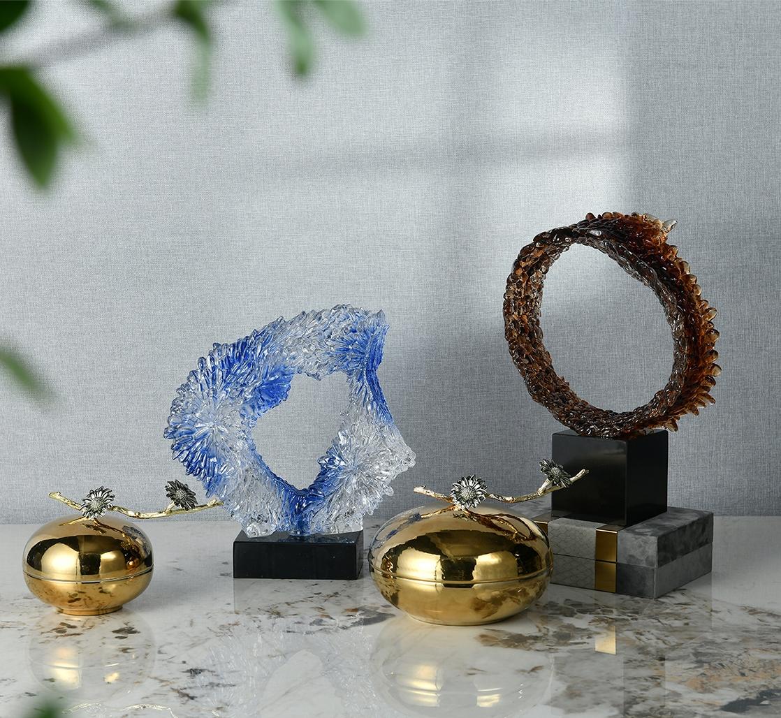 In the field of modern home decor, Rundecor has always adhered to innovation-driven design, committed to creating artistic home masterpieces that combine decoration and functionality for mid-to-high-end consumers worldwide. Today, we proudly present two new offerings: geometric resin sculptures and a pair of golden ceramic storage jars, designed to infuse your living space with distinctive charm and modern aesthetics.