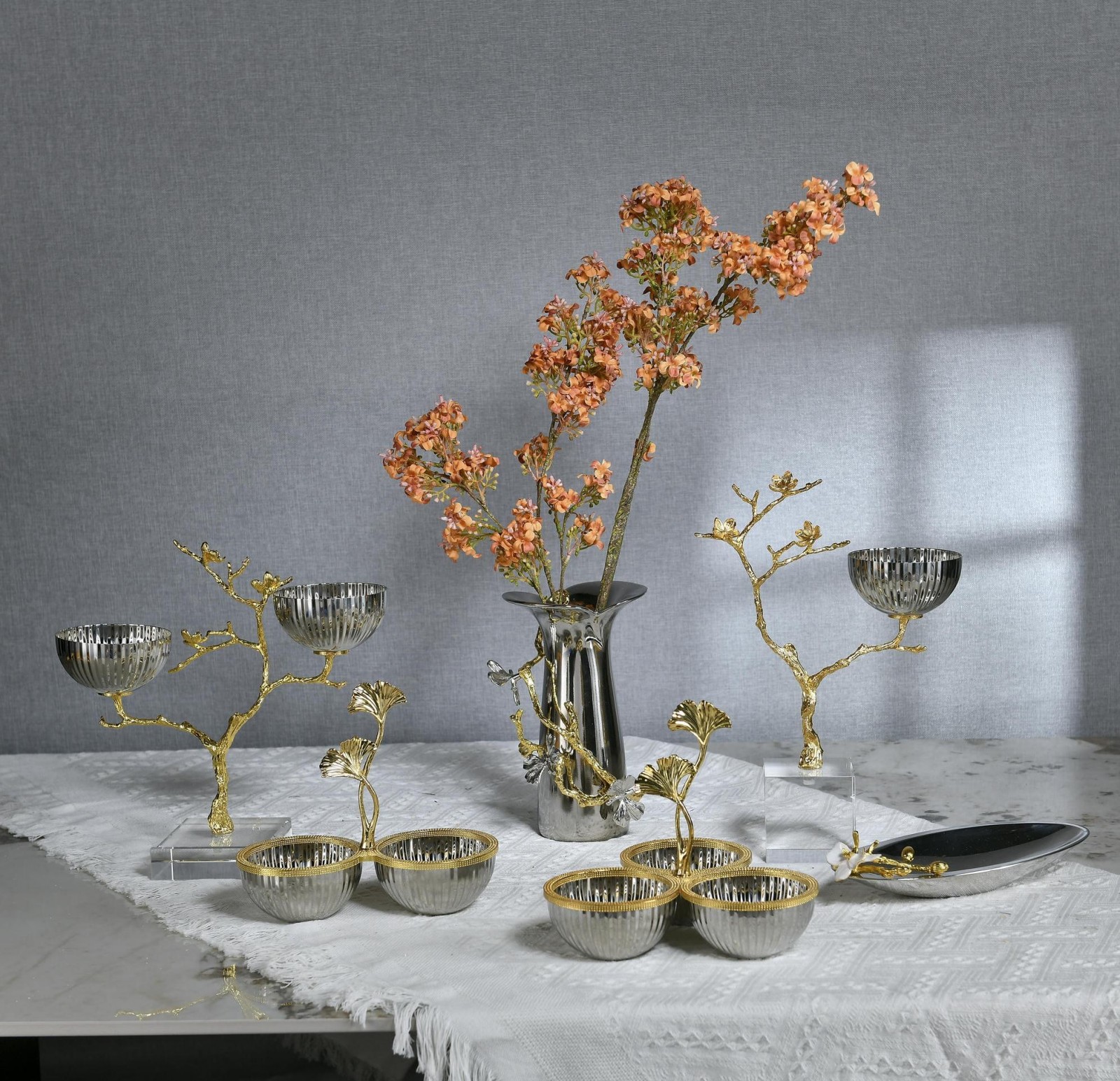 This pair of candlesticks concretizes the artistic sense of "natural growth" — the golden metal branches are strong and vigorous, with exquisitely detailed flowers dotted on them, creating a unique spark between the elegant charm of new Chinese style and the luxurious metallic texture. The transparent crystal base at the bottom not only enhances the visual lightness but also ensures structural stability.