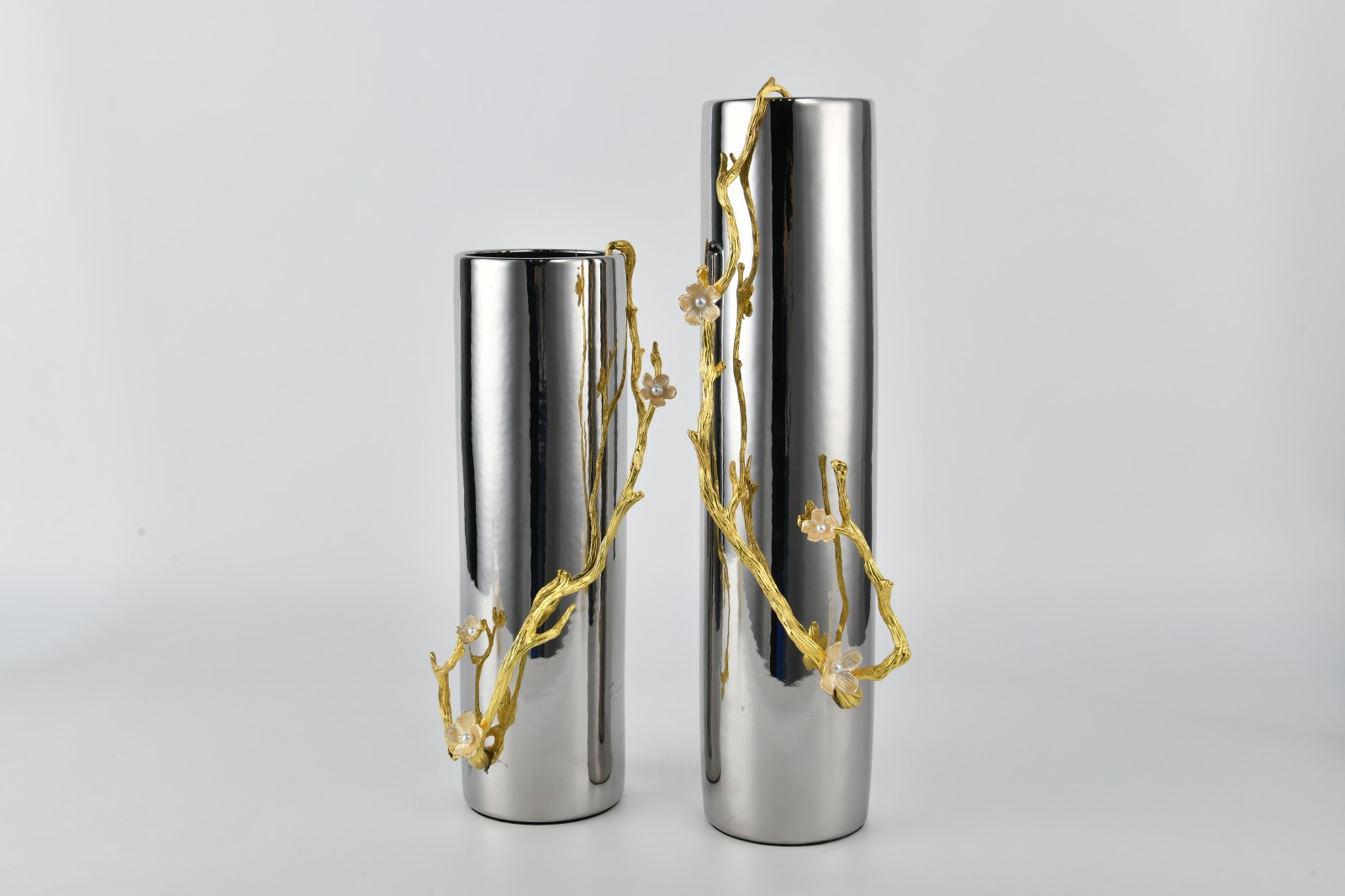 1. Silver Ceramic Vase — The Art of Nature and Light Luxury