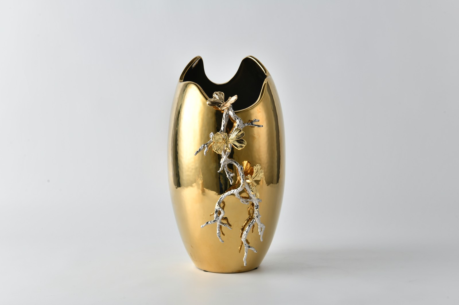 This season, Rundecor presents three exquisitely crafted new arrivals: a pair of gold ceramic vases, a pair of alloy branch candle holders, and a pair of silver stainless-steel fruit bowls.