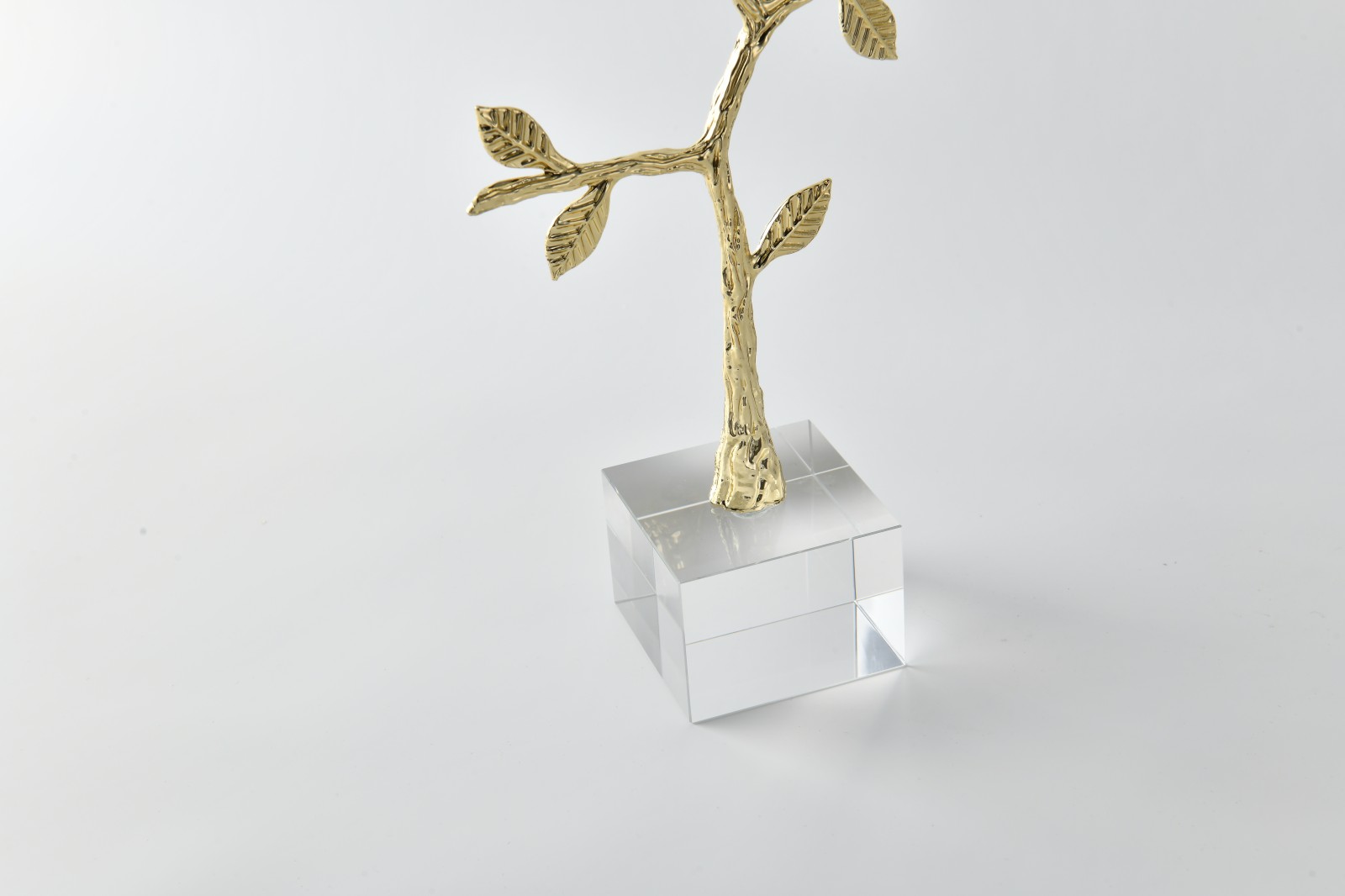 The alloy branch ornament is hand-inlaid and polished, with reflective highlights that make the sculpted branches appear vivid and dimensional.