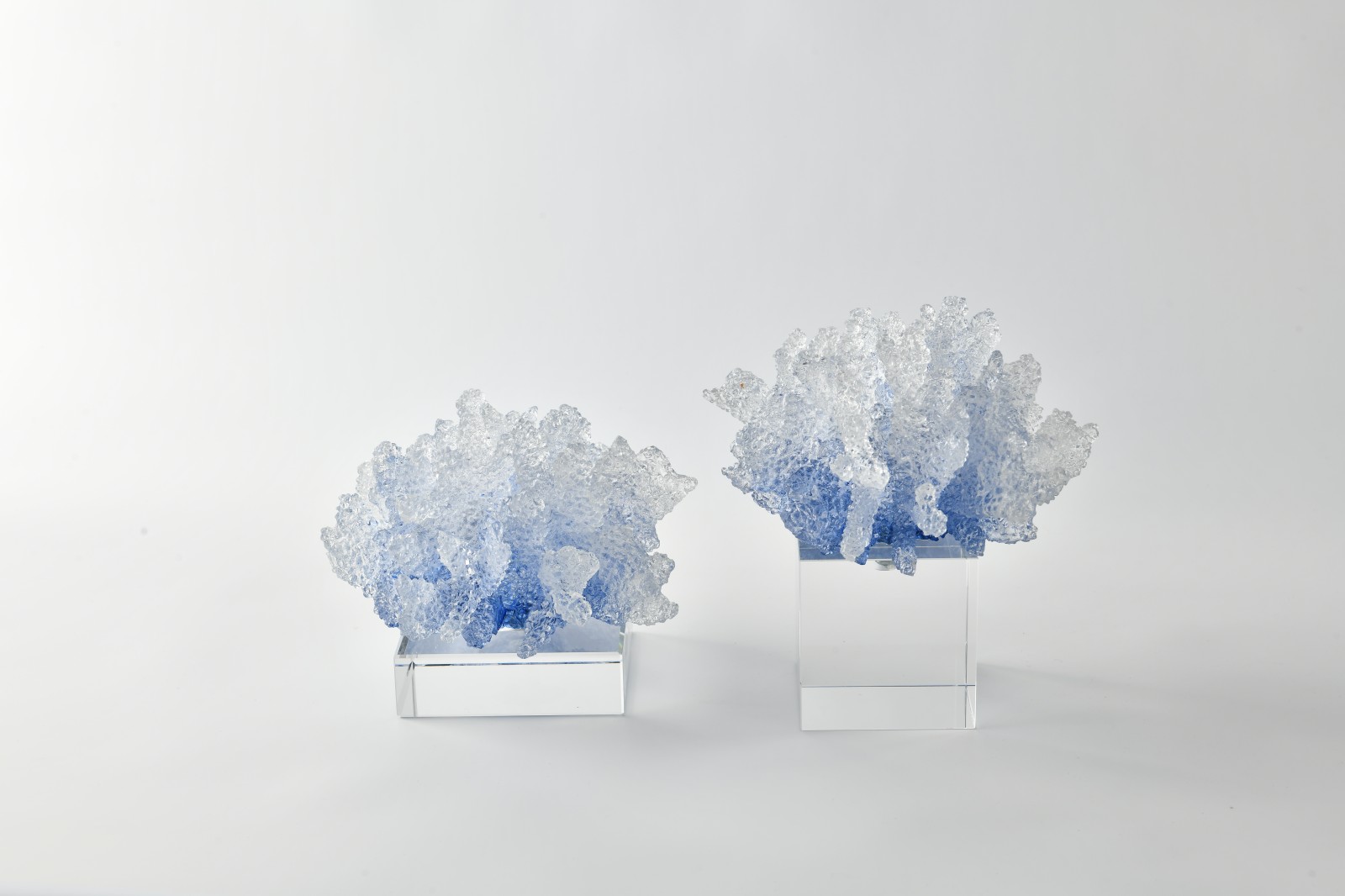 Complementing the vases, the "Ice Blue Coral" resin sculptures are cast from high-strength transparent resin with graduated blue pigments. The main form is an irregular coral shape, with branches naturally extending, and a surface treated with a blend of matte and high-gloss finishes to simulate coral growth underwater.