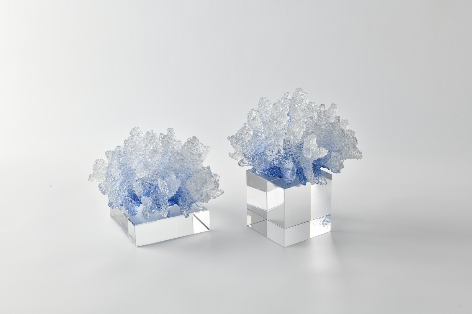 2. Blue Resin Sculptures: A Dialogue of Ice Crystals and Mirrors